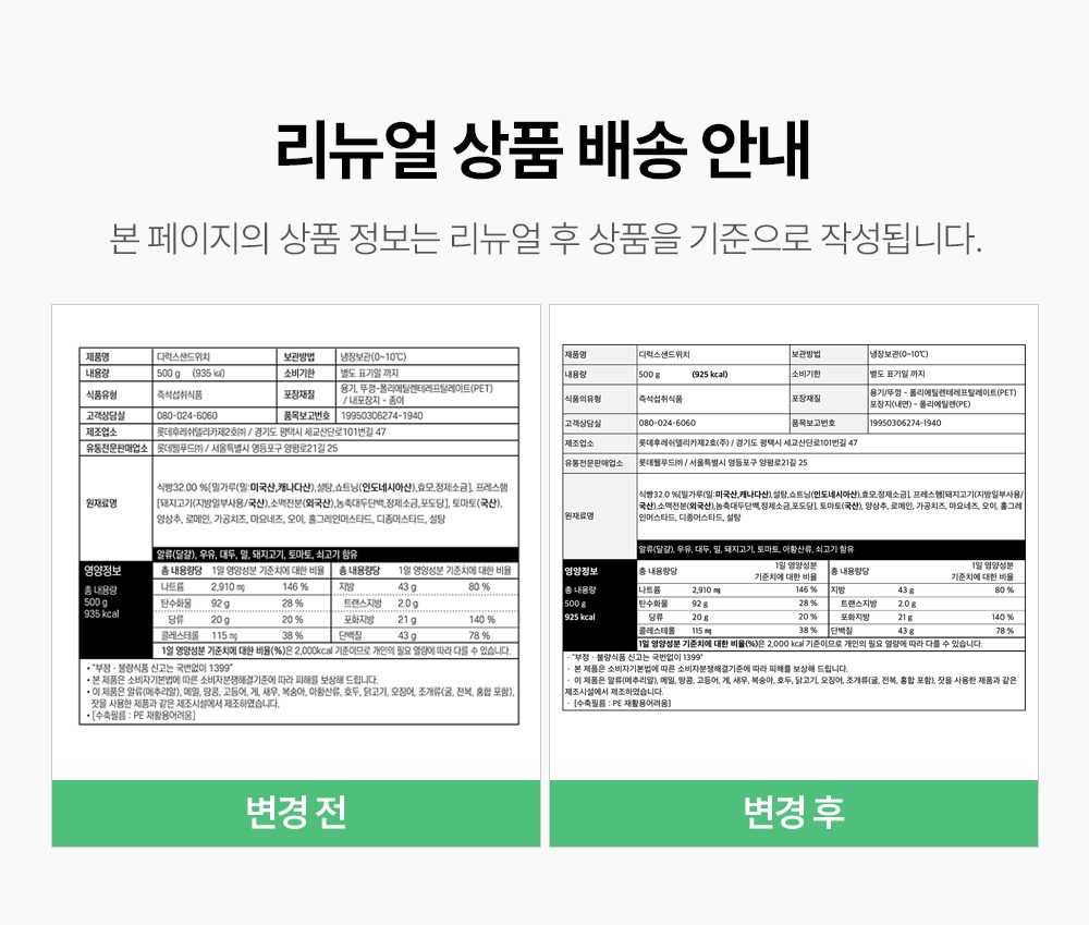 | 생산자 및 소재지 | 컨텐츠 참조 | 제조연월일, 소비기한 또는 품질유지기한 | 업데이트 예정 |