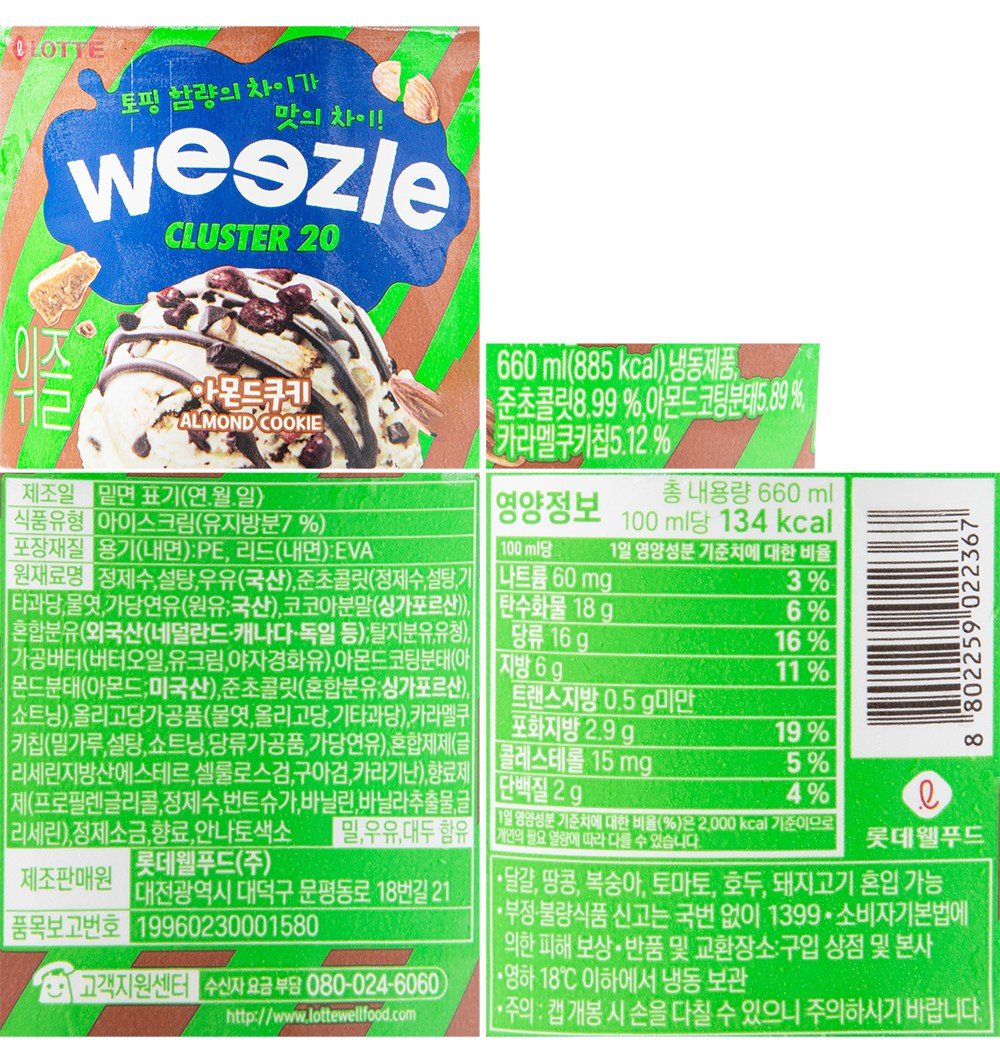 | 제품명 | 위즐 아몬드쿠키 | 식품의 유형 | 컨텐츠 참조 |