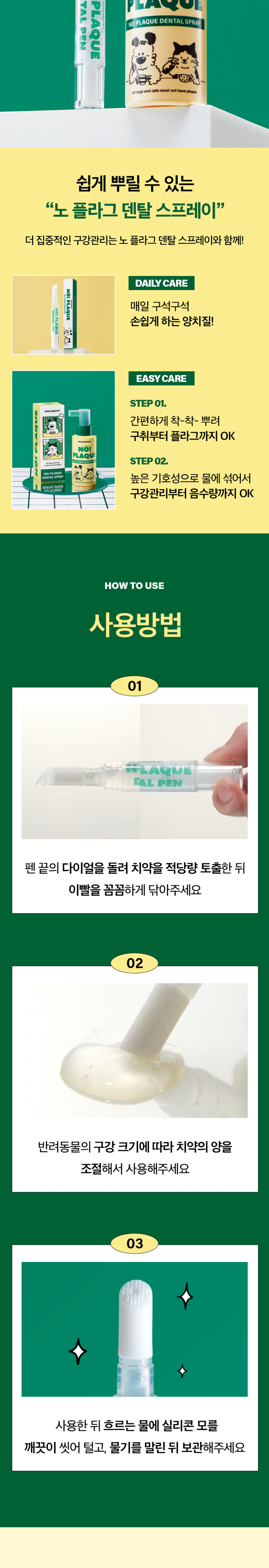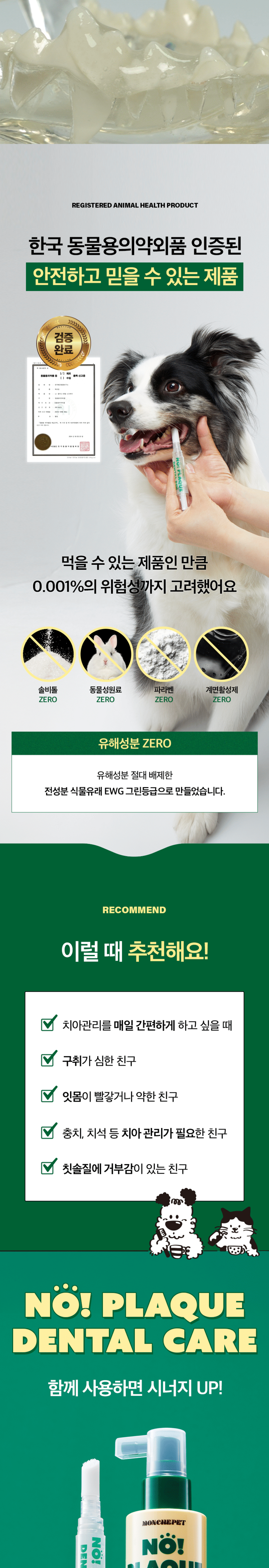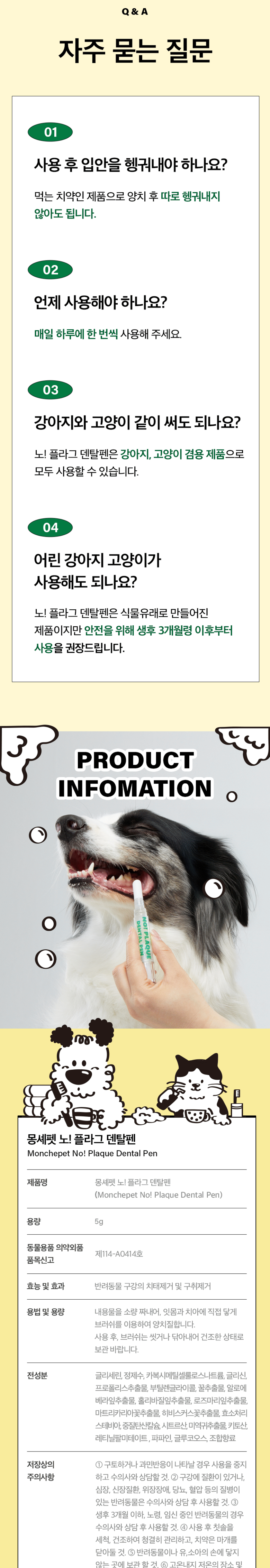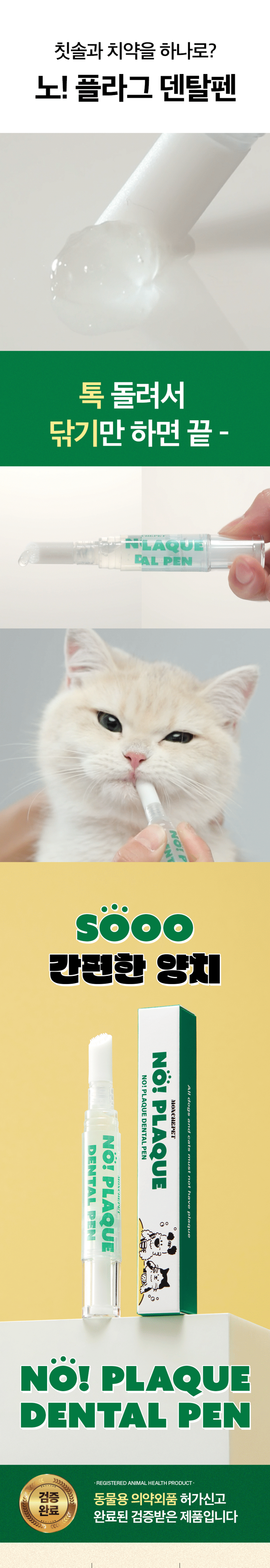 | 품명 및 모델명 | 노! 플라그 덴탈펜 | 인증사항 | 동물용의약외품 제114-A0414gh |