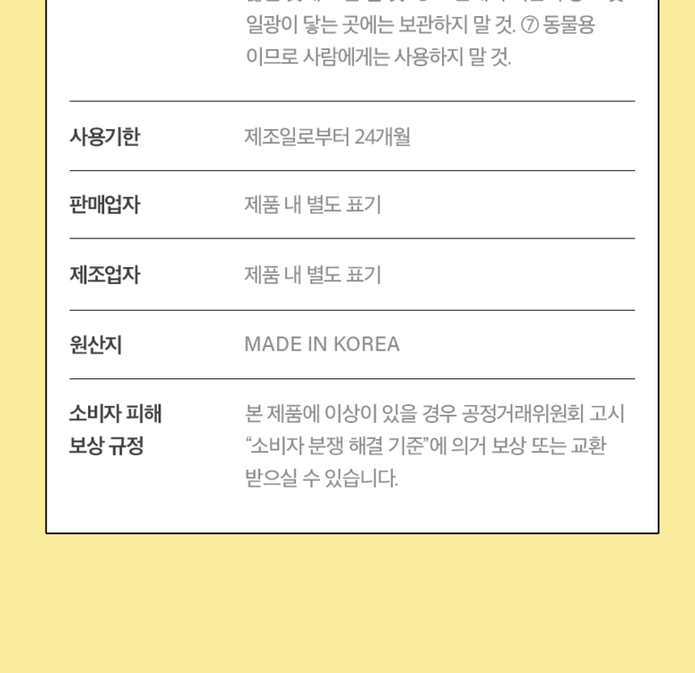다만, 판매자의 제시사항이 관계법령보다 소비자에게 유리한 경우에는 판매자 제시사항이 적용됩니다.