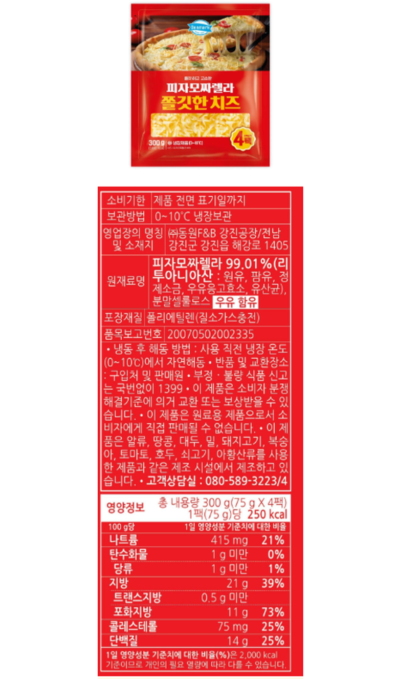 덴마크 피자모짜렐라 쫄깃한 치즈 300g(75gX4개) 2팩, 300g, 2개
