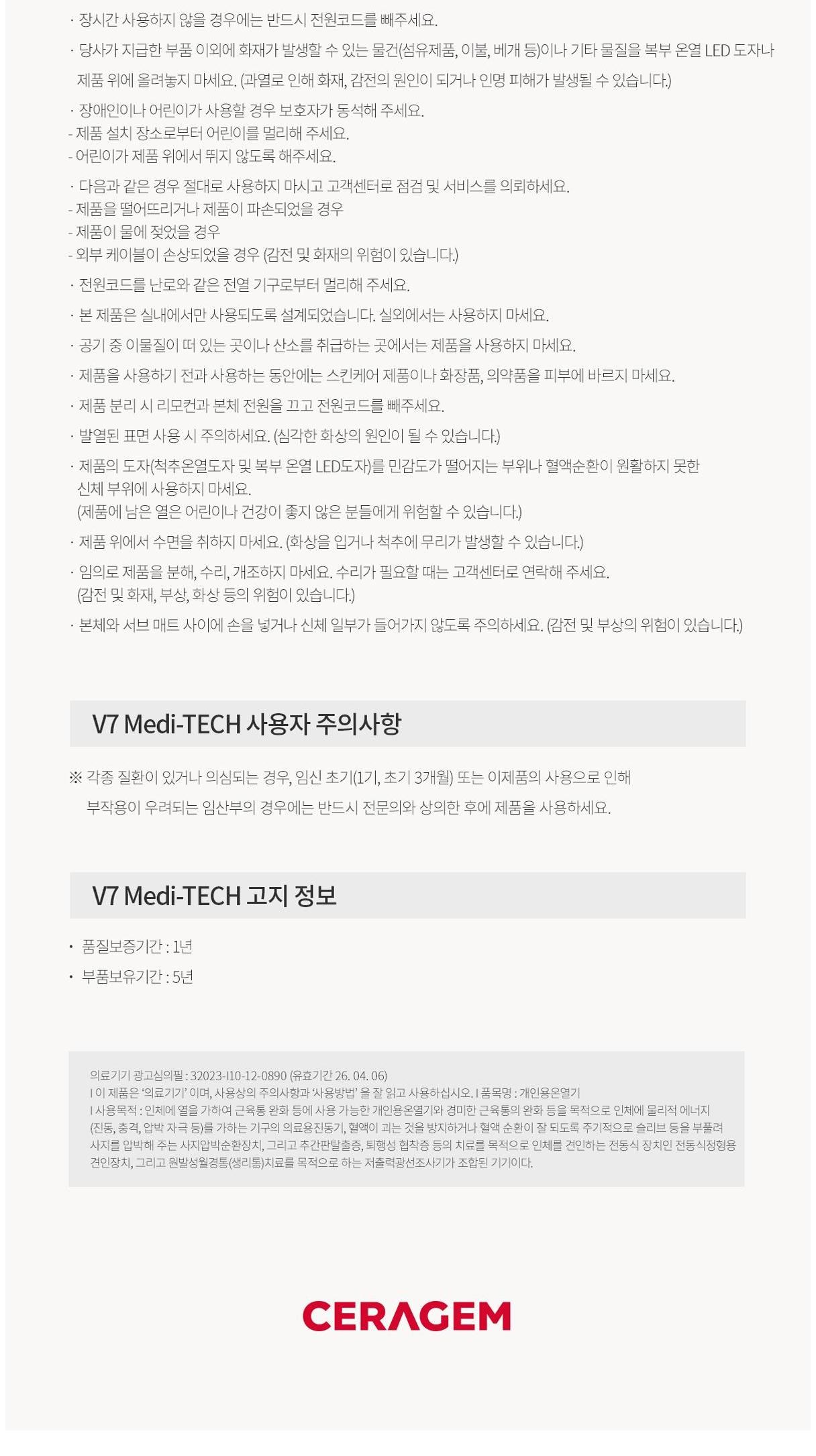 | 제조자(수입자) | (주)세라젬 | 제조국 | 한국 |
