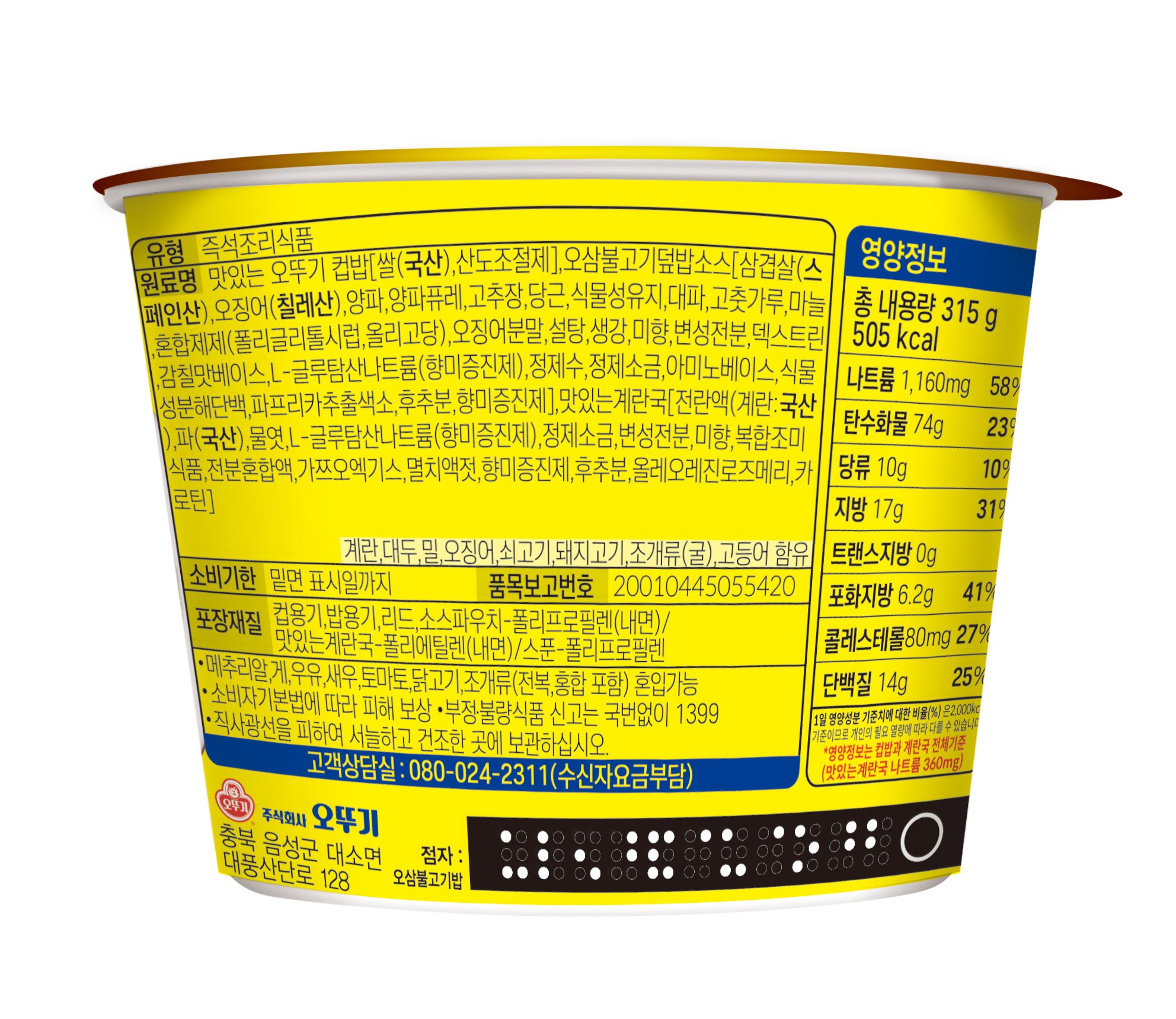 | 포장단위별 내용물의 용량(중량), 수량 | 315g, 5개 | 원재료명 및 함량 | 컨텐츠 참조 |
