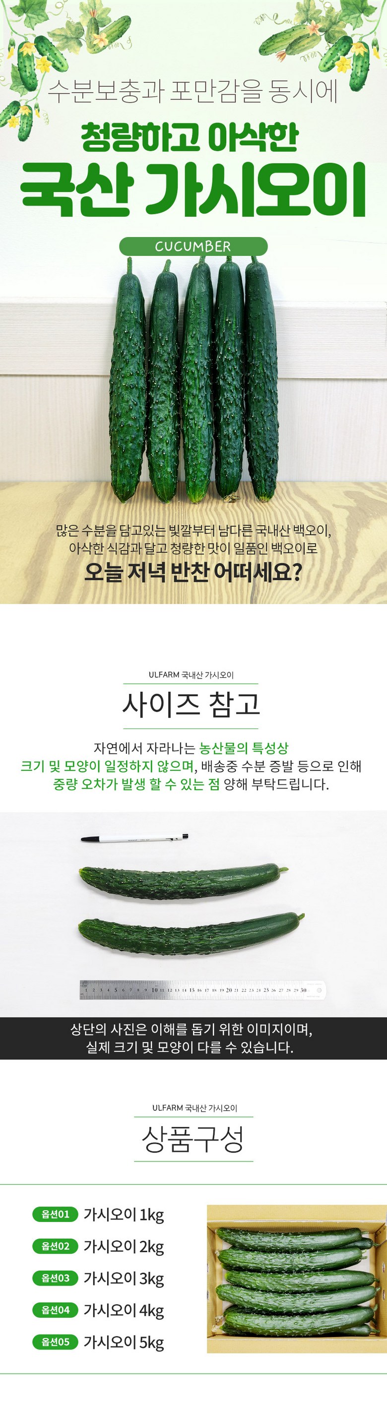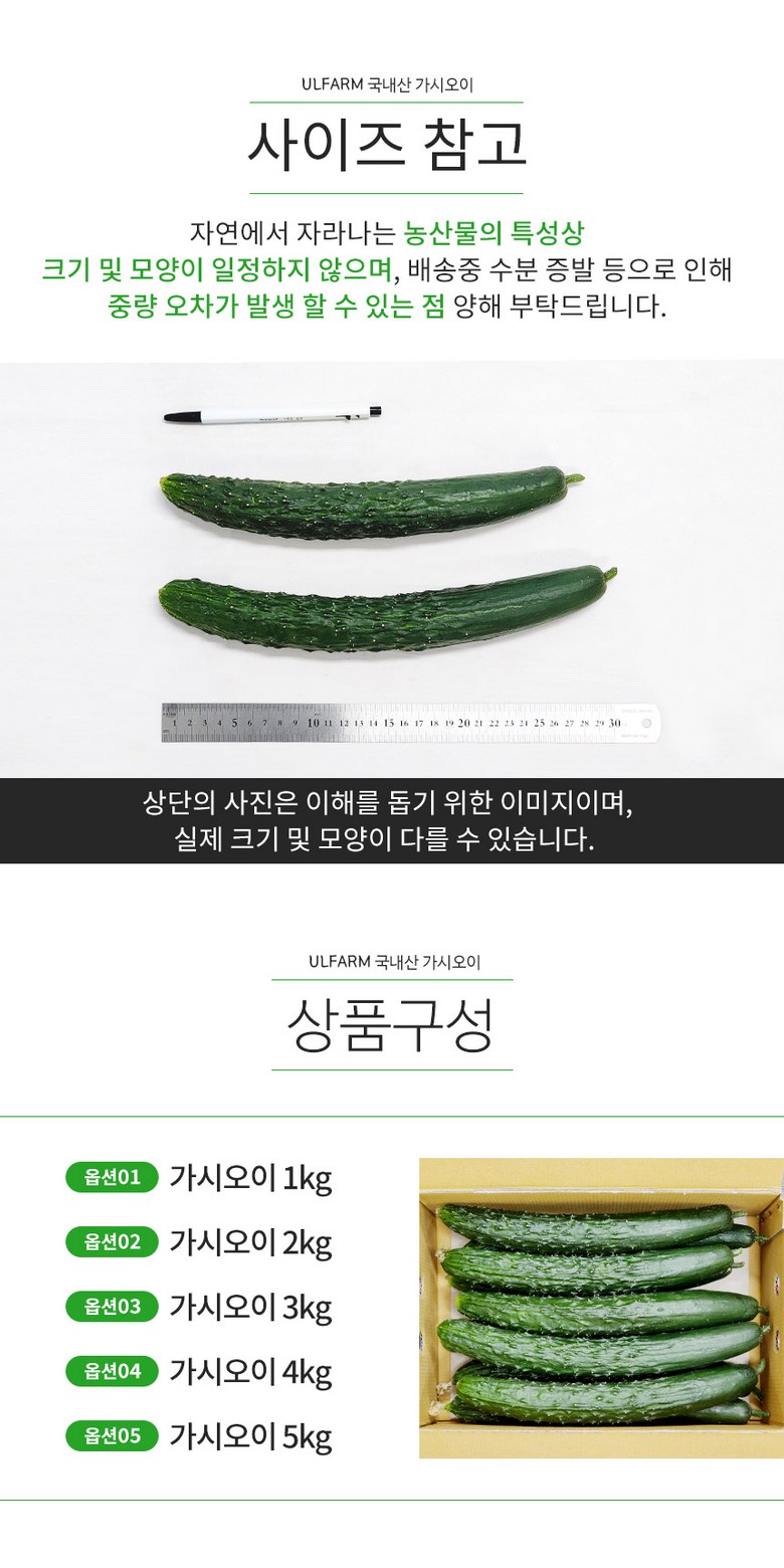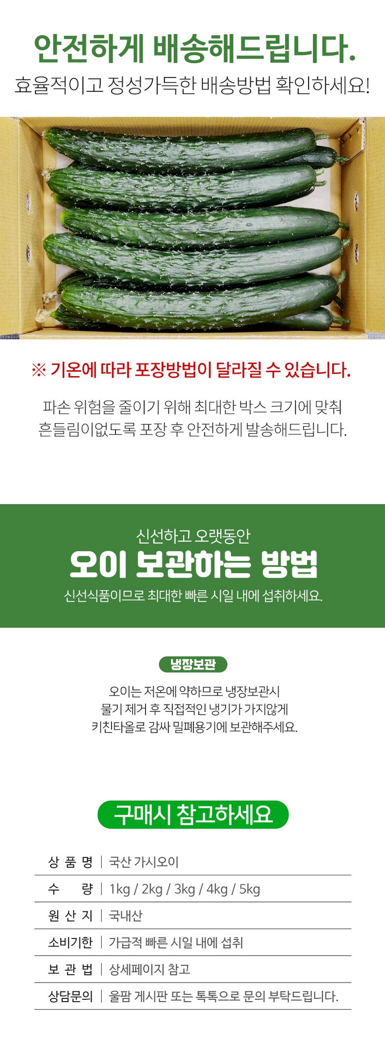 | 품목 또는 명칭 | 가시오이 | 포장단위별 내용물의 용량(중량),수량,크기 | 1kg/2kg/3kg/4kg/5kg |