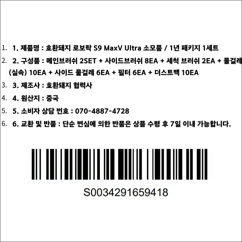 | 소비자상담 및 교환반품 문의 | 쿠팡고객센터 1577-7011 배송 및 환불/교환에 대한 문의는 마이쿠팡-고객센터 내 상담하기를 이용해주세요. | ||