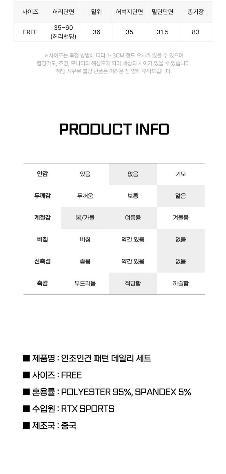 - 하의 사이즈: 여성 FREE