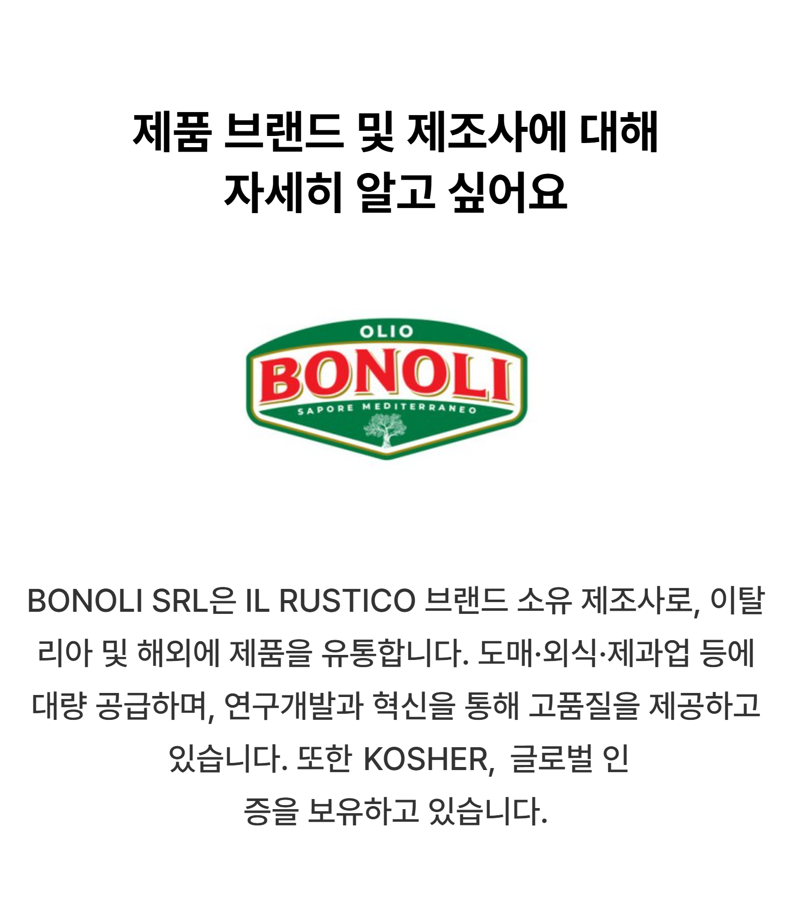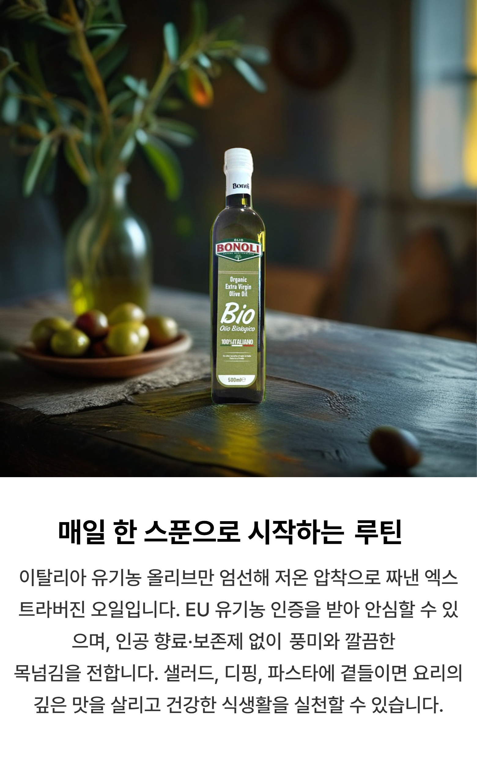 | 제품명 | 보놀리 유기농 엑스트라버진 올리브 오일 | 식품의 유형 | 컨텐츠 참조 |