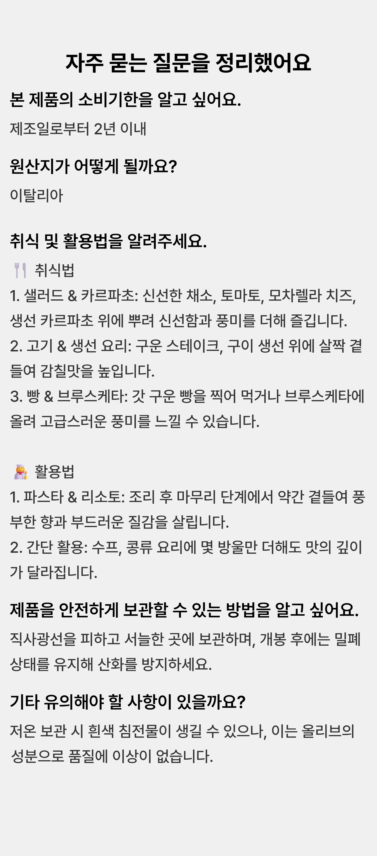 - 종류: 올리브유