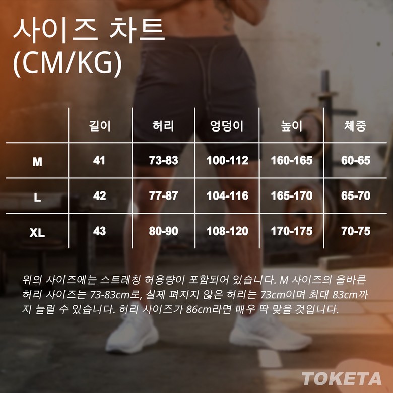 - 하의류 길이: 무릎 위 길이(반바지 길이)