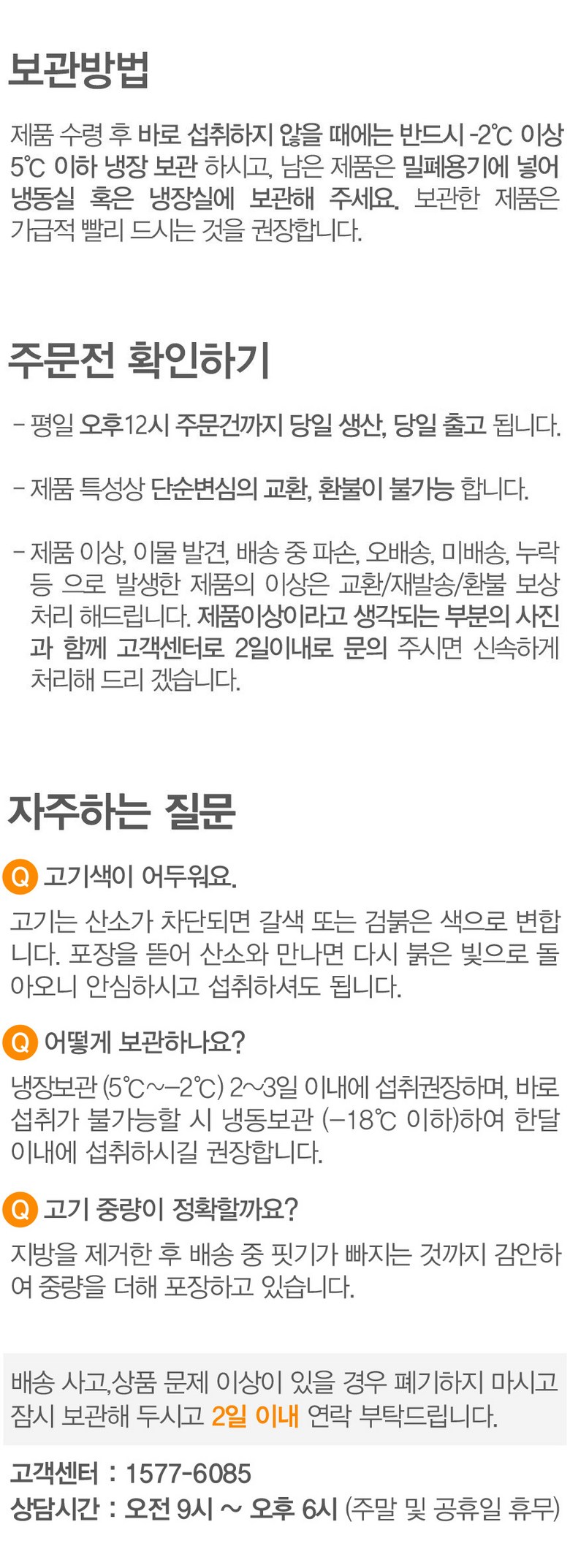 | 제조연월일, 소비기한 또는 품질유지기한 | 상시제조냉장 : 제조일로부터 2일 이내냉동 : 제조일로부터 6개월 이내 | 세부 품목군별 표시사항 | 상품 상세페이지 참조 |
