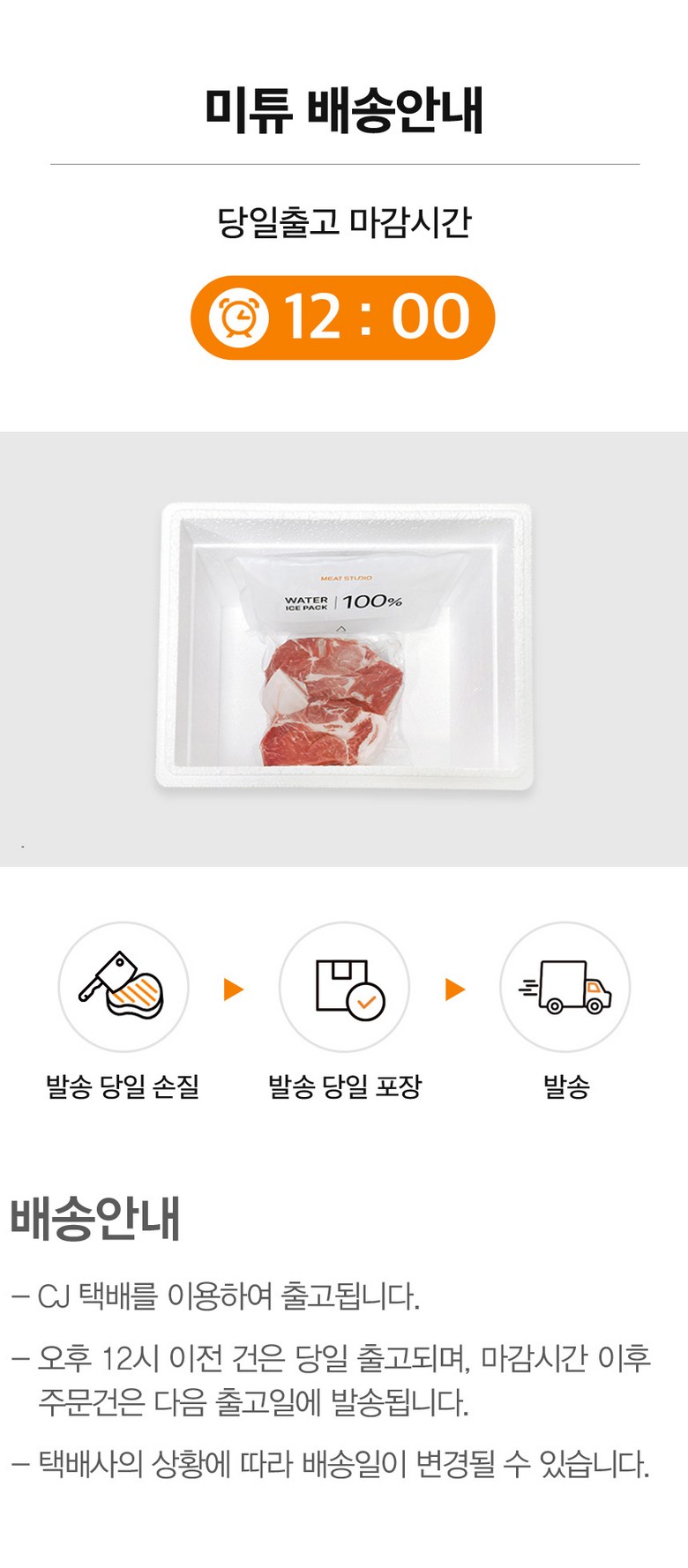 | 배송방법 | 신선/냉장/냉동 | 배송비 | 무료배송 · 도서산간 추가 배송비 - 제주 지역: 3,000원 - 도서산간 지역: 5,000원 |