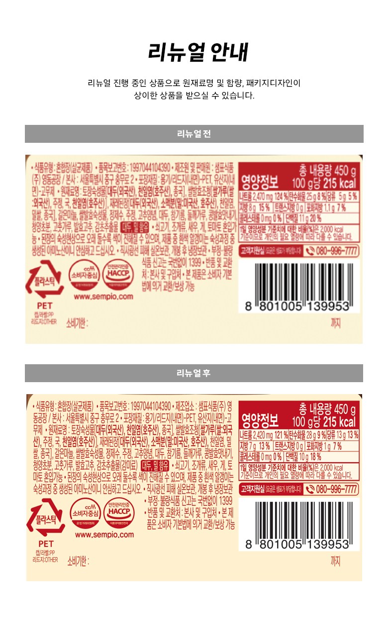 | 제품명 | 샘표 매콤 쌈토장 | 식품의 유형 | 컨텐츠 참조 |