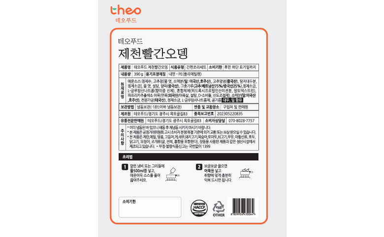 | 제품명 | 테오푸드 제천빨간오뎅 | 식품의 유형 | 간편조리세트 |