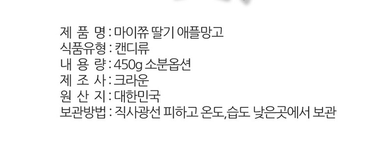 | 제품명 | 상품 상세페이지 참조 | 식품의 유형 | 상품 상세페이지 참조 |
