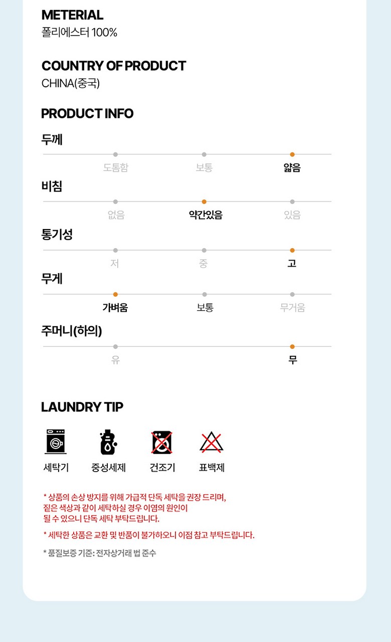 - 세탁방법: 세탁기사용가능