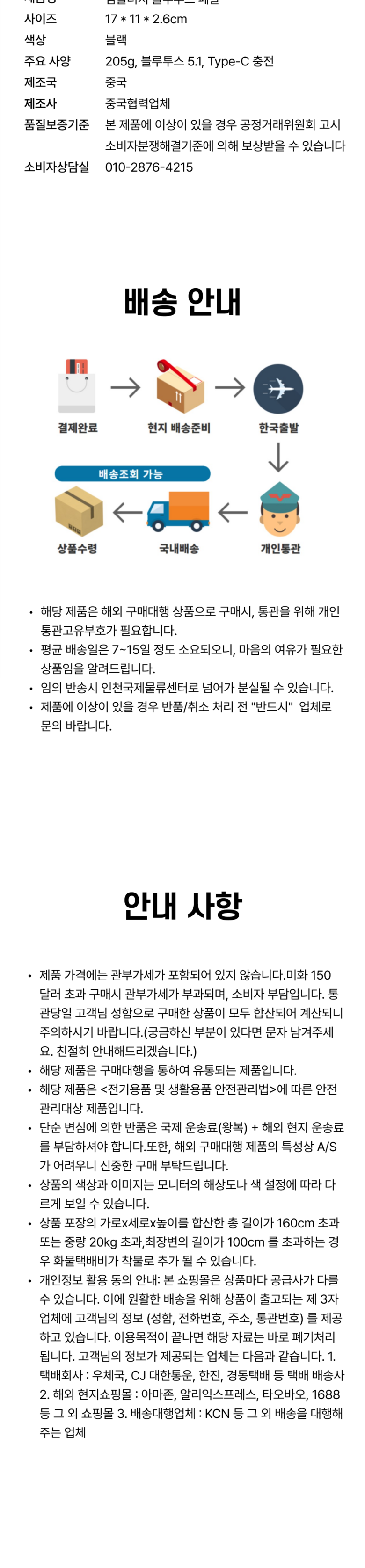| 소비자상담 관련 전화번호 | 상품 상세페이지 참조 | ||