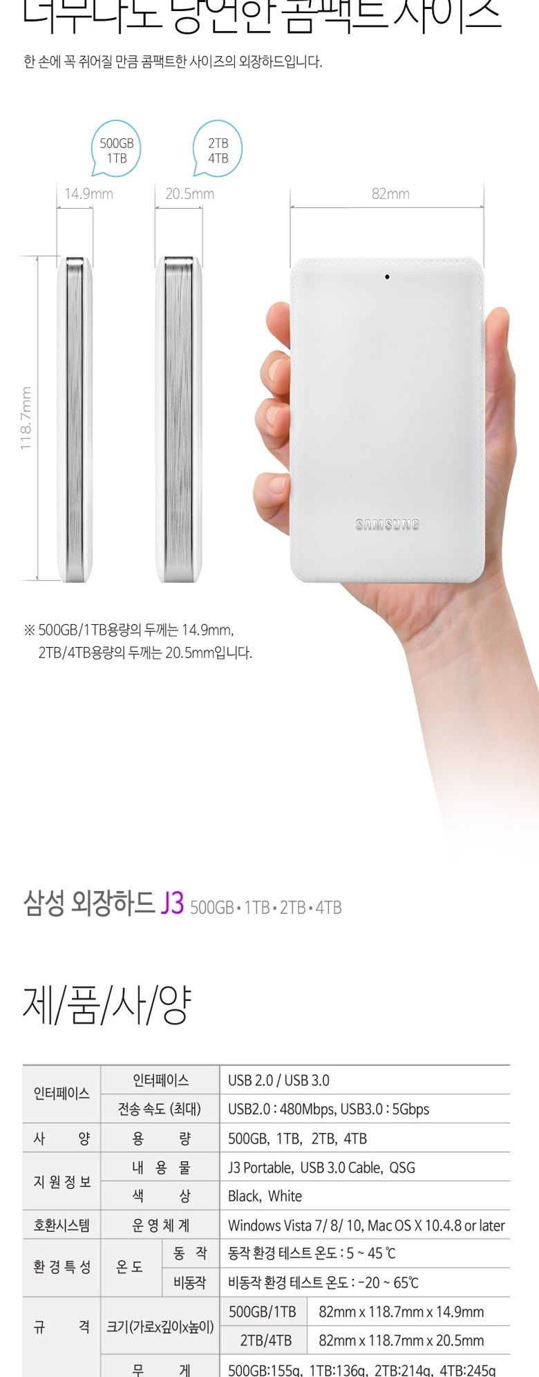 | 품명 및 모델명 | 삼성외장HDD J3 1TB | KC 인증정보 | MSIP-REM-STX-HX-MK10A02 |
