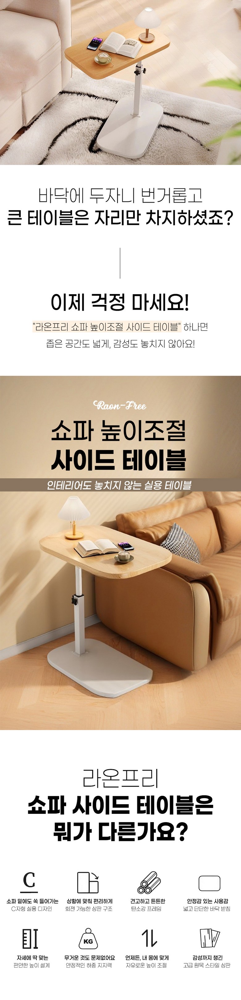 | 품명 | 라온프리 쇼파 높이조절 사이드 테이블 | KC 인증정보 | 해당없음 |