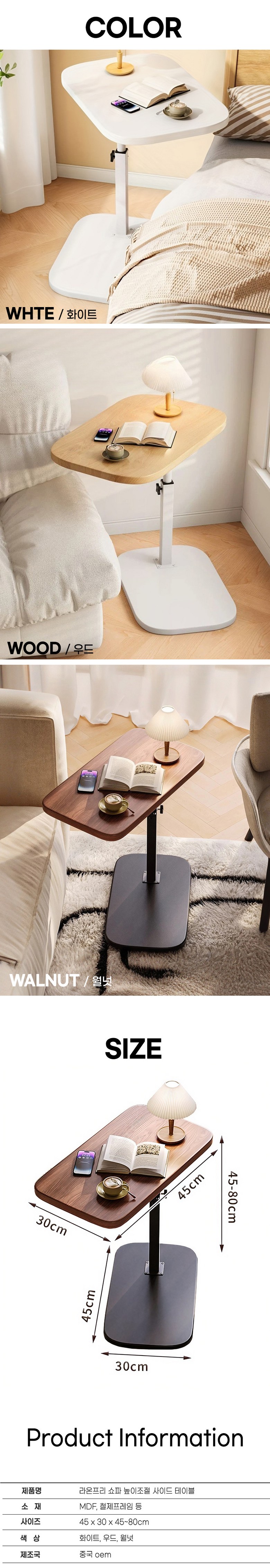 | 색상 | 우드, 화이트, 월넛 | 구성품 | 상판 + 지지대 |