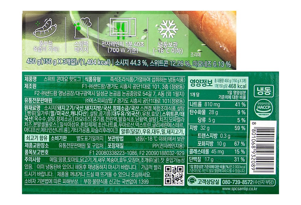 달콤한 스위트콘이 들어간 핫도그예요. 한입 베어 물면, 부드럽게 톡톡 터지며 은은한 단맛을 선사하죠. 소시지의 탱글탱글한 식감과 솔솔 뿌려진 치즈의 고소한 풍미가 별미랍니다. 패키지는 스팀팩을 사용해, 핫도그를 고르게 익혀줘요. 봉지째로 전자레인지에 넣어 손쉽게 조리해 보세요.