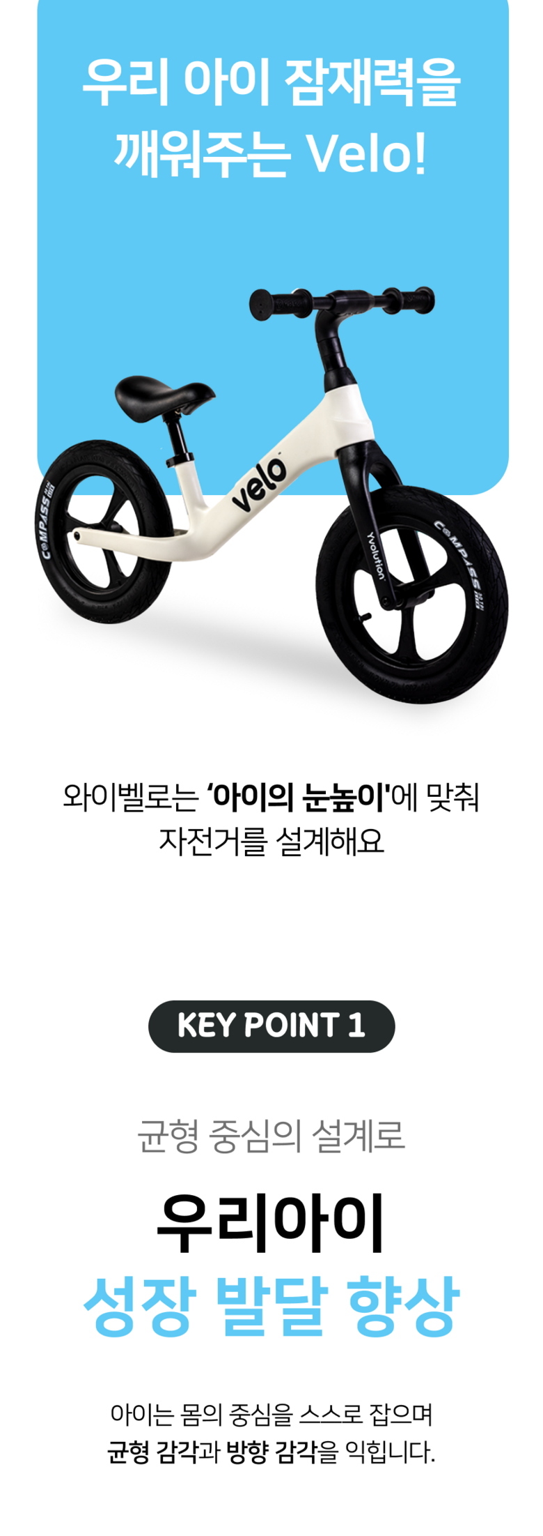 | 품명 및 모델명 | 이볼루션 와이벨로 프로 밸런스 바이크 | KC 인증정보 | 인증기관 : 한국건설생활환경시험연구원 / 인증번호 : CB061R8346-4001 / 인증일자 20240930 / 제품분류 : 어린이 완구 |