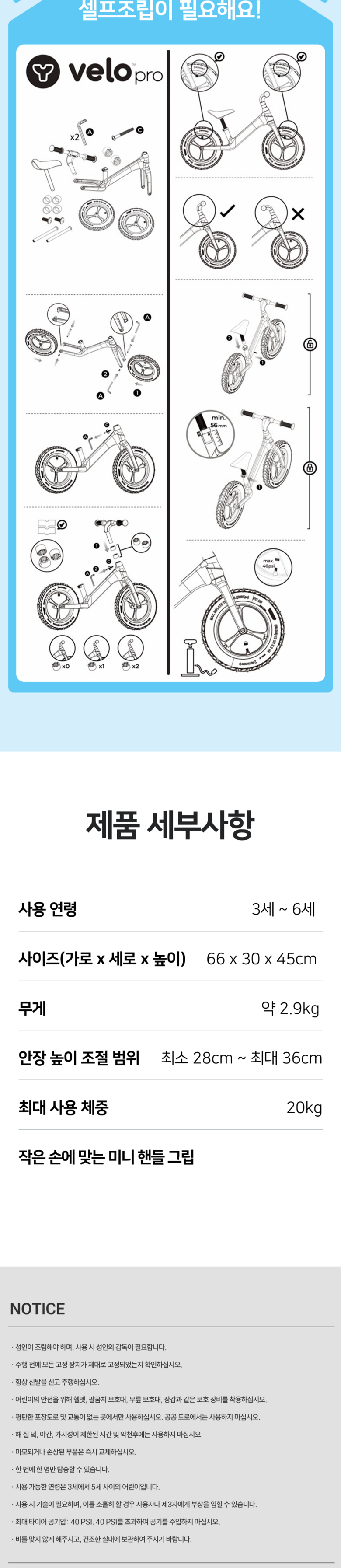 | 크기 | 앞바퀴~뒷바퀴 : 90CM지면으로부터 안장 최저높이 : 60CM | 중량 | 약 3KG |