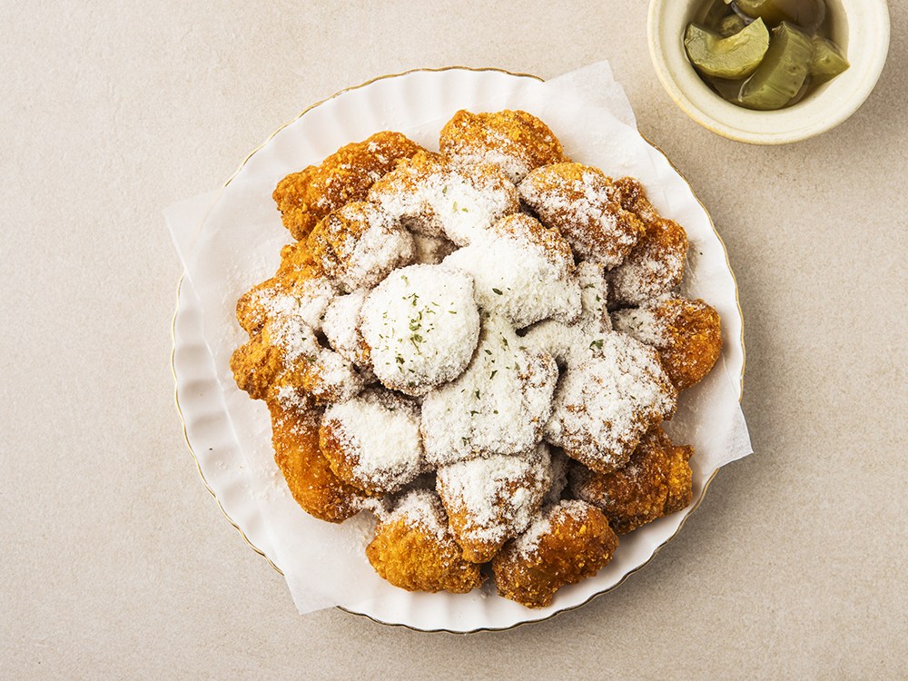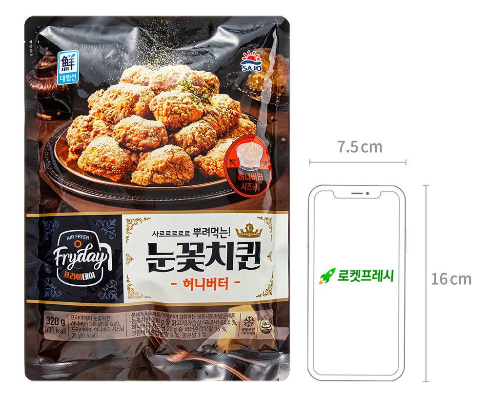 시즈닝을 눈꽃처럼 사르르 뿌려먹는 눈꽃치퀸이에요. 에어프라이어나 전자레인지로 간단하게 조리해, 시즈닝을 뿌려주기만 하면 완성되죠. 바삭바삭한 식감에 달짝지근하고 고소한 감칠맛까지 더해지니 자꾸만 손이 간답니다.