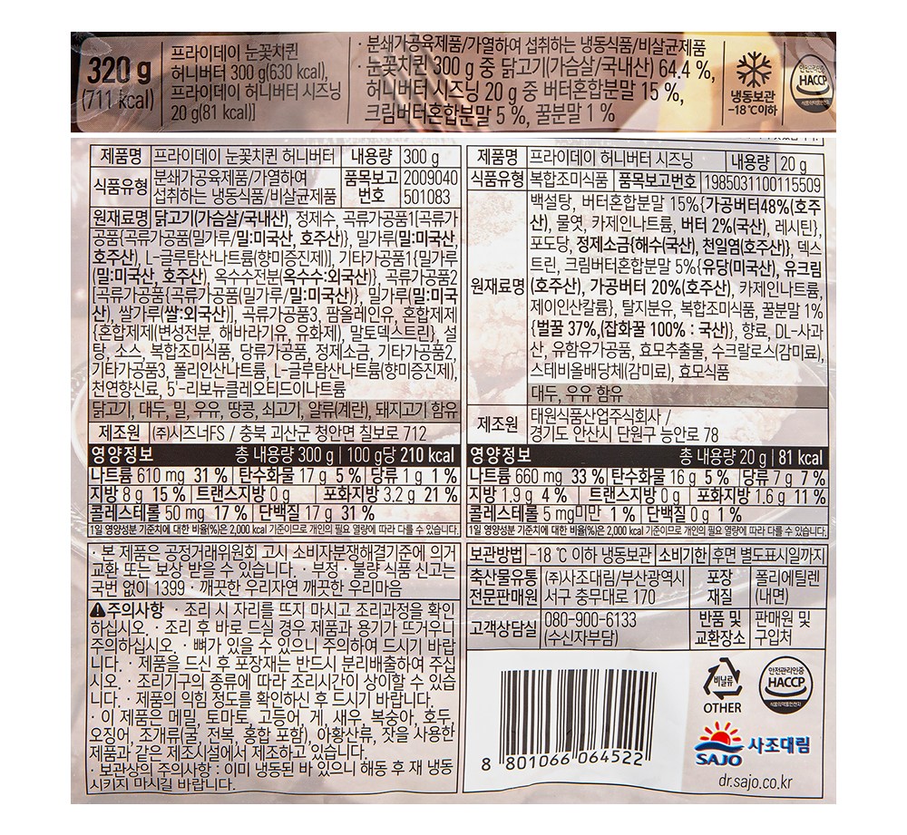 눈꽃치퀸 허니버터, 허니버터 시즈닝으로 구성되어 있습니다.