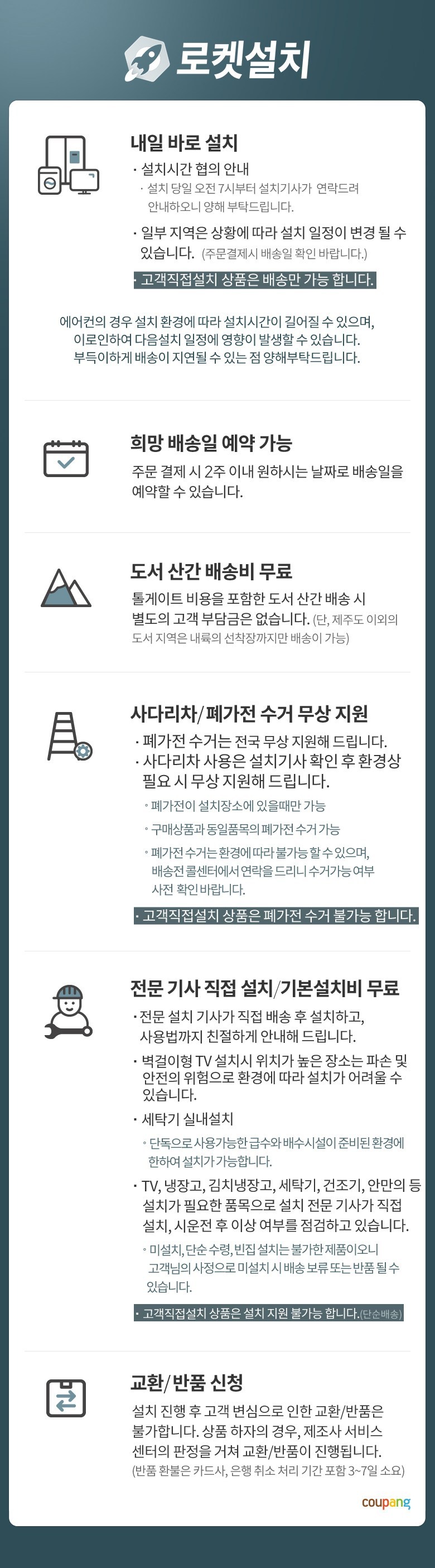 | 배송방법 | 설치배송 | 배송사 | 쿠팡로지스틱스 |