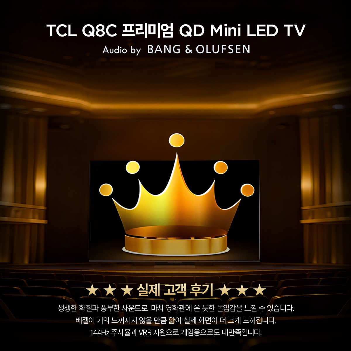 | 품명 및 모델명 | 텔레비전수상기 / 85Q8C | KC 인증정보 | 본품 : XU090397-25133, R-R-TcL-85C8K / 무선모듈 : R-R-Gsd-WKXT0TM2501 |