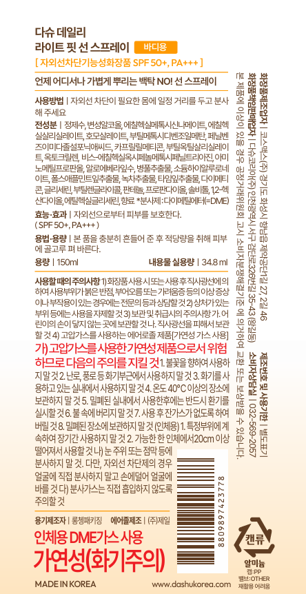 | 화장품제조업자, 화장품책임판매업자 및 맞춤형화장품판매업자 | 컨텐츠 참조 | 제조국 | 대한민국 |