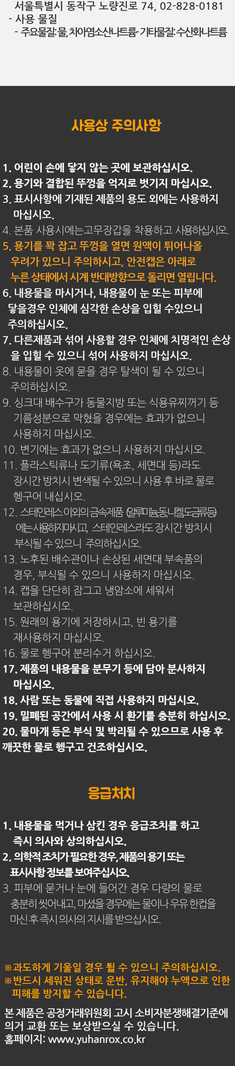 | 품목 및 제품명 | 상품 상세페이지 참조 | 용도(표백제의 경우 계열을 함께표시) 및 제형 | 상품 상세페이지 참조 |