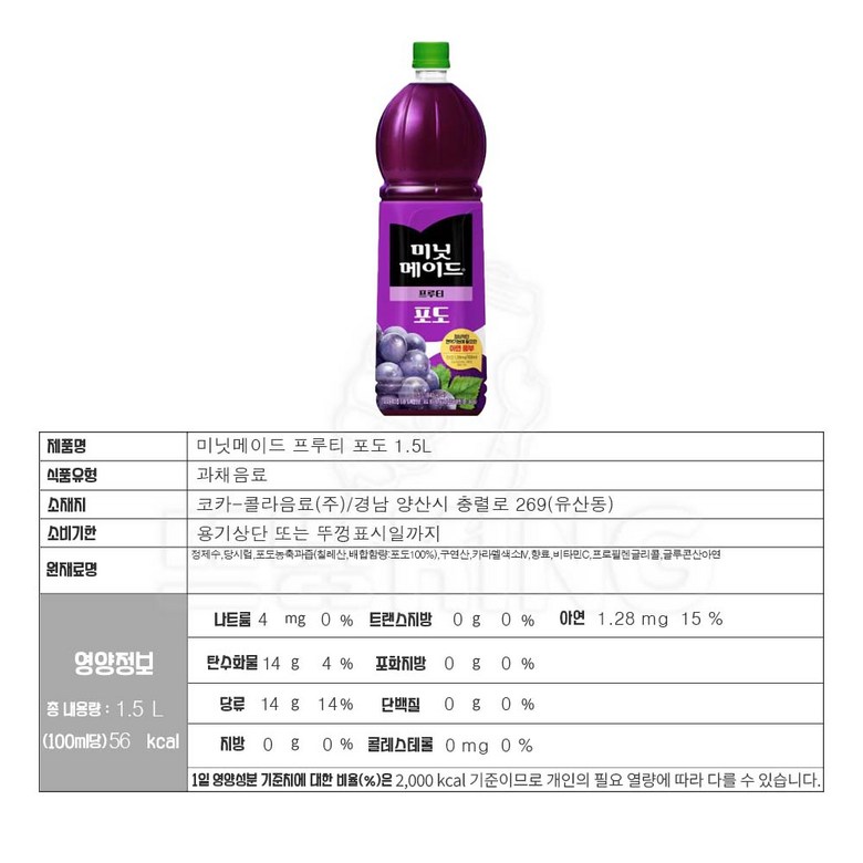 | 생산자 및 소재지 | 상품 상세페이지 참조 | 제조연월일, 소비기한 또는 품질유지기한 | 상품 상세페이지 참조 |