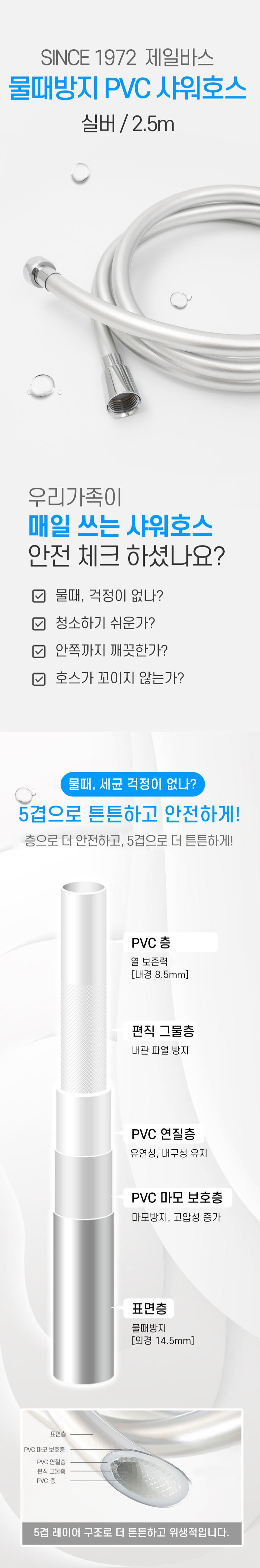 | 품명 및 모델명 | 물때방지 PVC 샤워호스 실버 2.5m | 인증/허가 사항 | 유/KC 마크 |