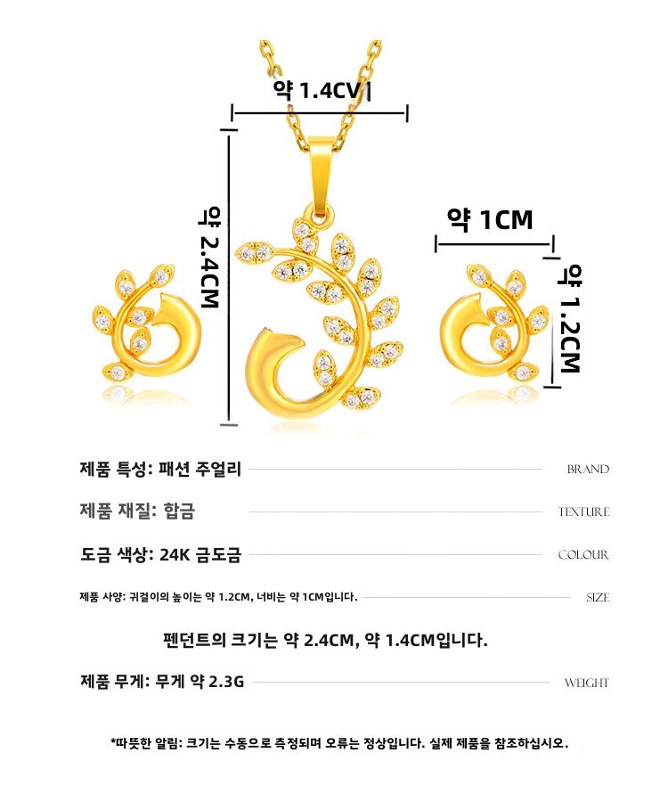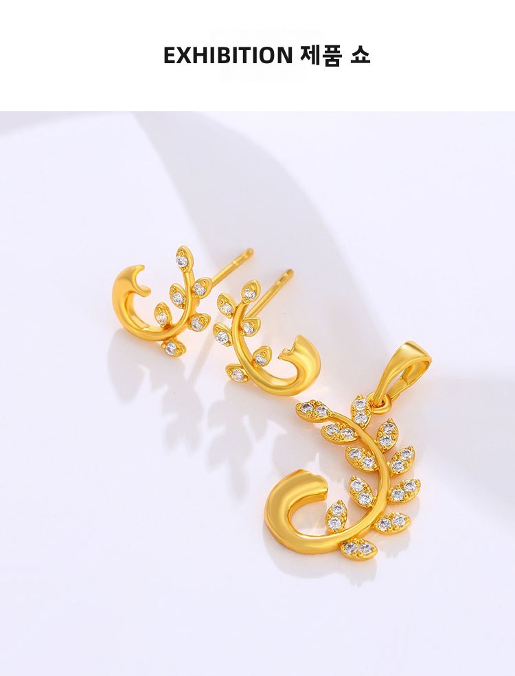 RoseAria 지르코늄 리프 귀걸이 + 목걸이 세트