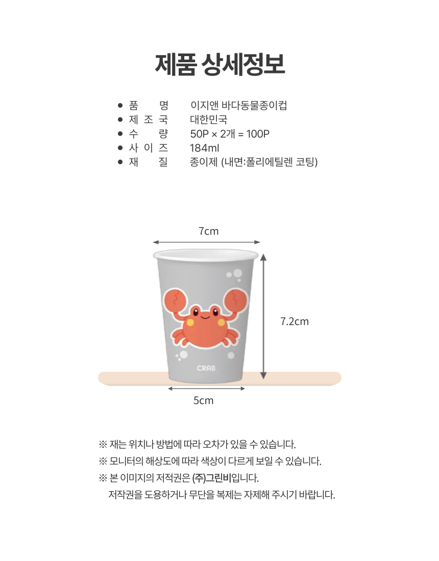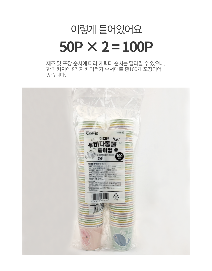 | 품명 및 모델명 | 이지앤 바다동물 종이컵 | 인증/허가 사항 | 위생용품 |