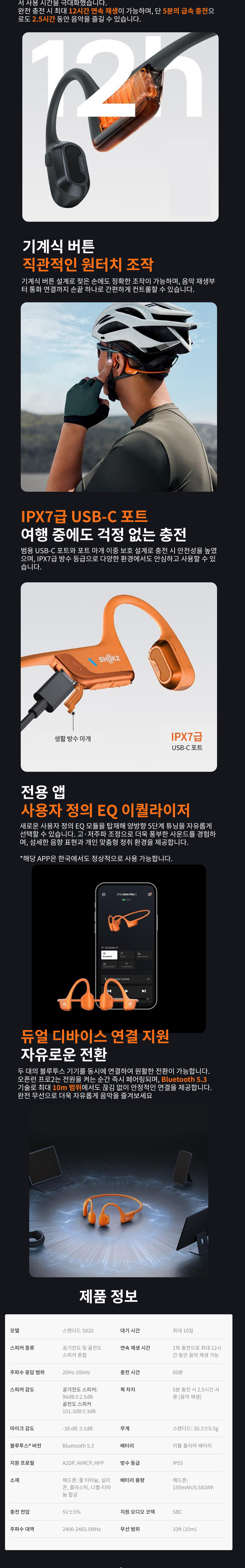 | 품명 및 모델명 | Shokz OpenRun Pro2 S820 | KC 인증정보 | 상품이 KC,EMC 대상인 경우, 본품 및 구성품 모두 인증번호 또는 인증번호가 없는 경우 KC 마크 여부를 기재해주세요. (대상이 아닌경우 "해당없음" 기재) |