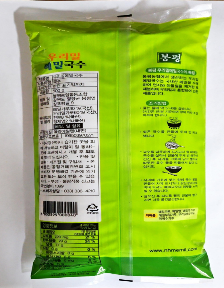 우리밀 메밀국수, 봉평농협에서 신선한 국산 메밀 사용