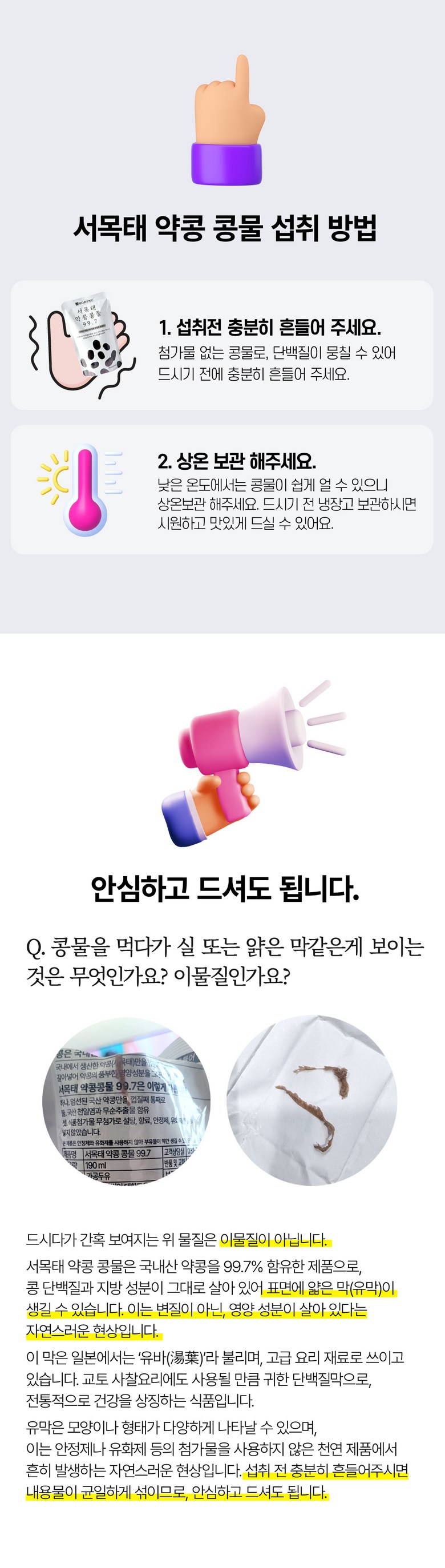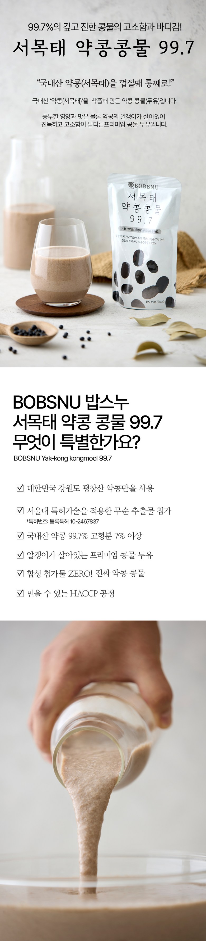 | 제품명 | 서목태 약콩콩물 99.7 | 식품의 유형 | 가공두유, 멸균제품(레토르트제품) |