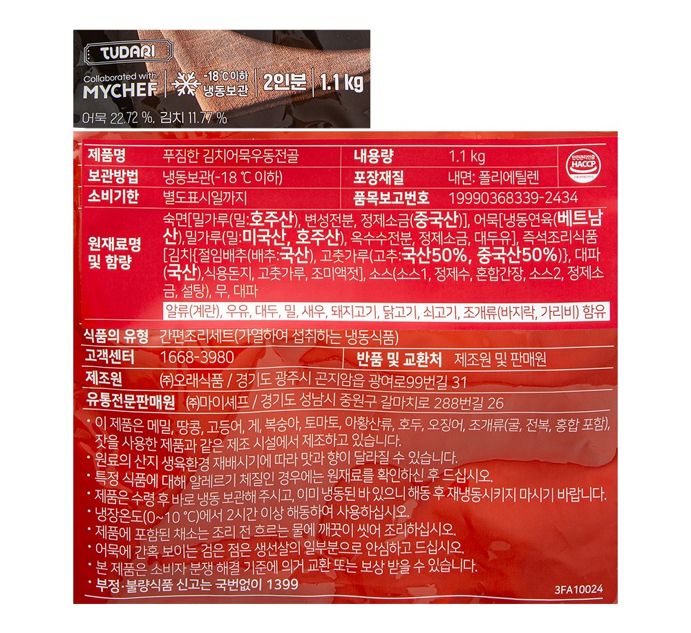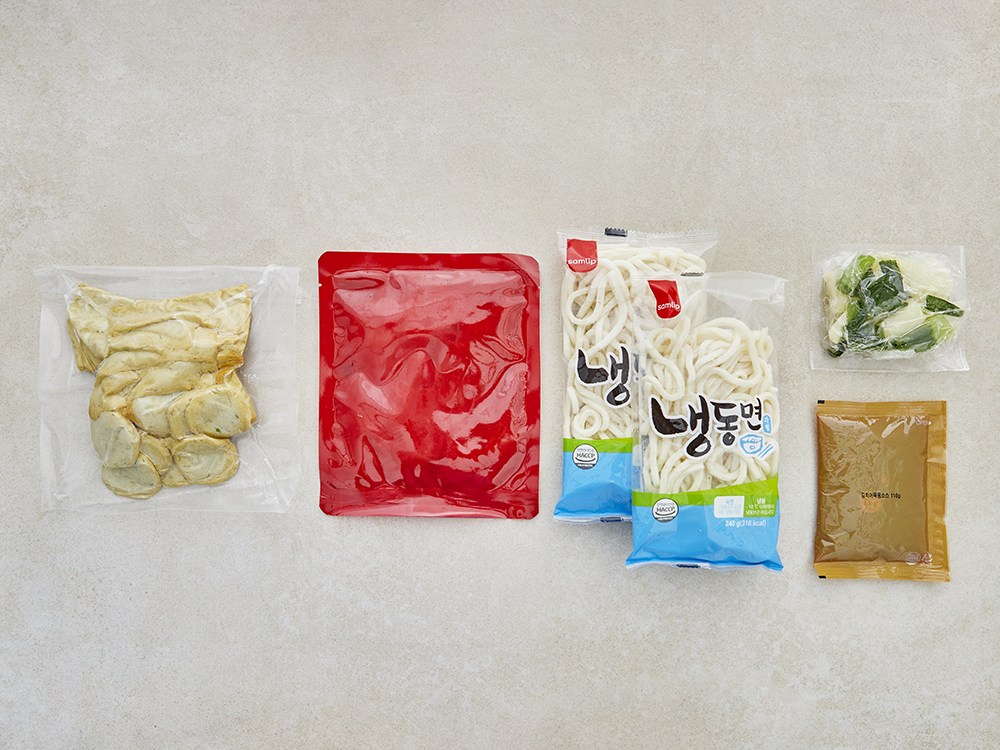 어묵, 즉석조리식품(김치 함유), 숙면, 무, 대파, 소스로 구성되어 있습니다.