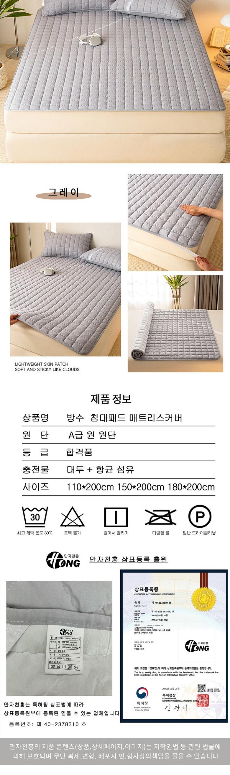 | 품명 및 모델명 | 방수 순면 침대패드 고정밴드형 CL | 인증/허가 사항 | 상품 상세페이지 참조 |