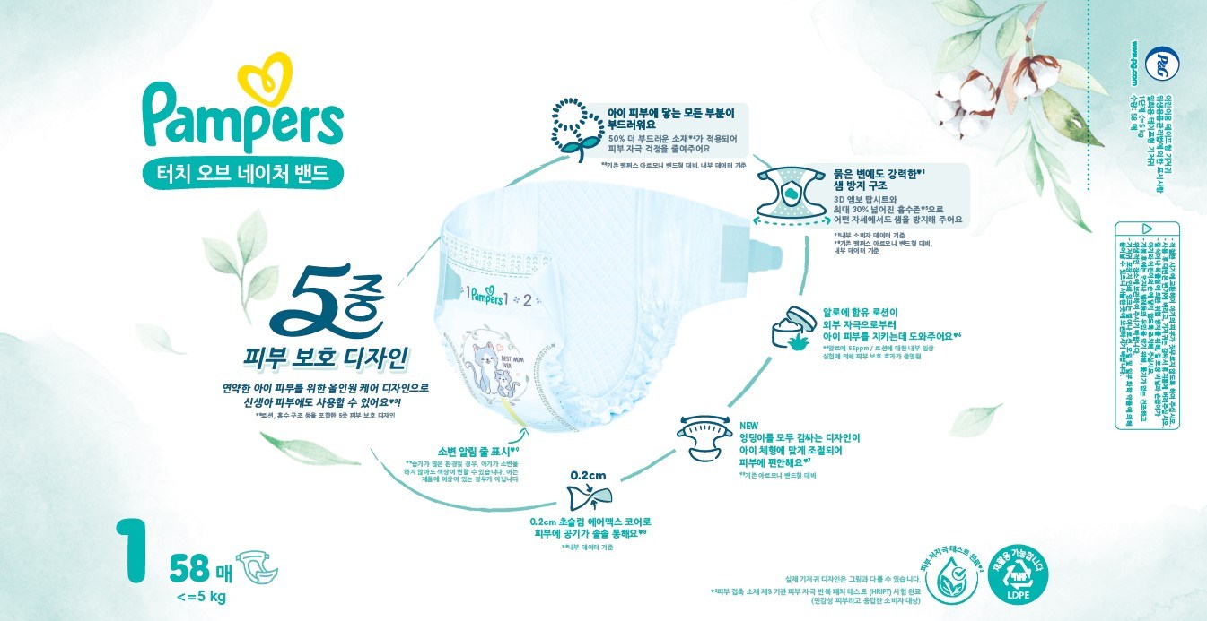 | 품명 및 모델명 | 팸퍼스 터치 오브 네이처 밴드형 | KC 인증정보 | 위생용품 |