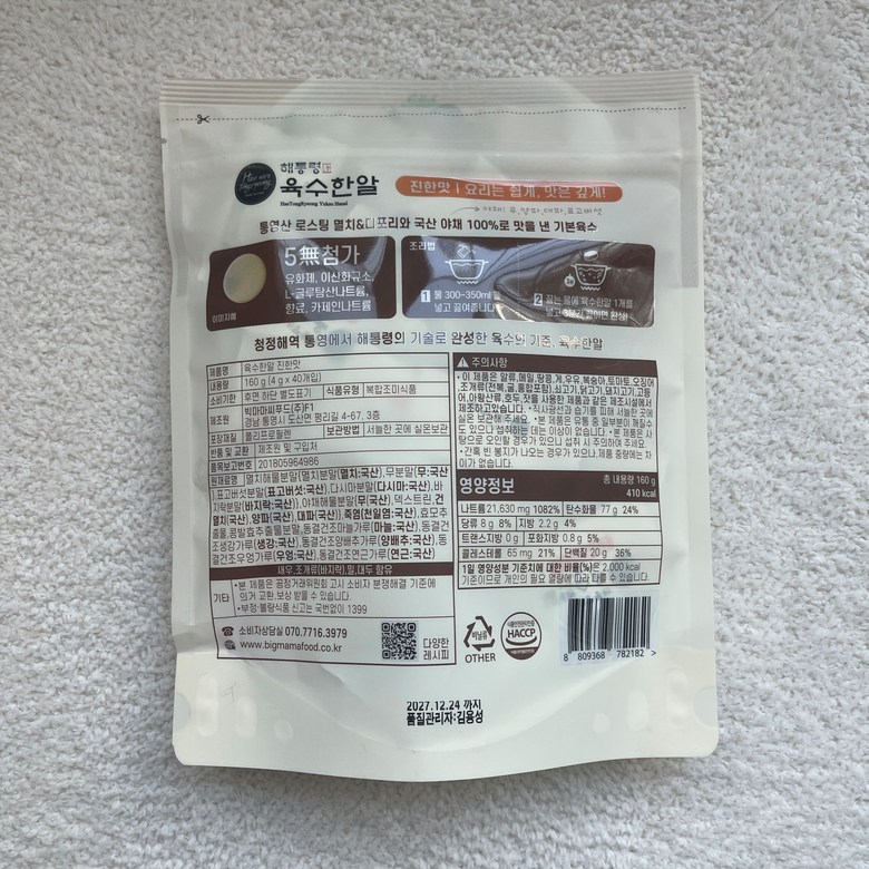 | 생산자 및 소재지 | 상품 상세페이지 참조 | 제조연월일, 소비기한 또는 품질유지기한 | 소비기한(또는 유통기한) : 2027년 11월 20일 이거나 그 이후인 상품 제조년월일 : 2025년 11월 21일 이후인 제조상품 |