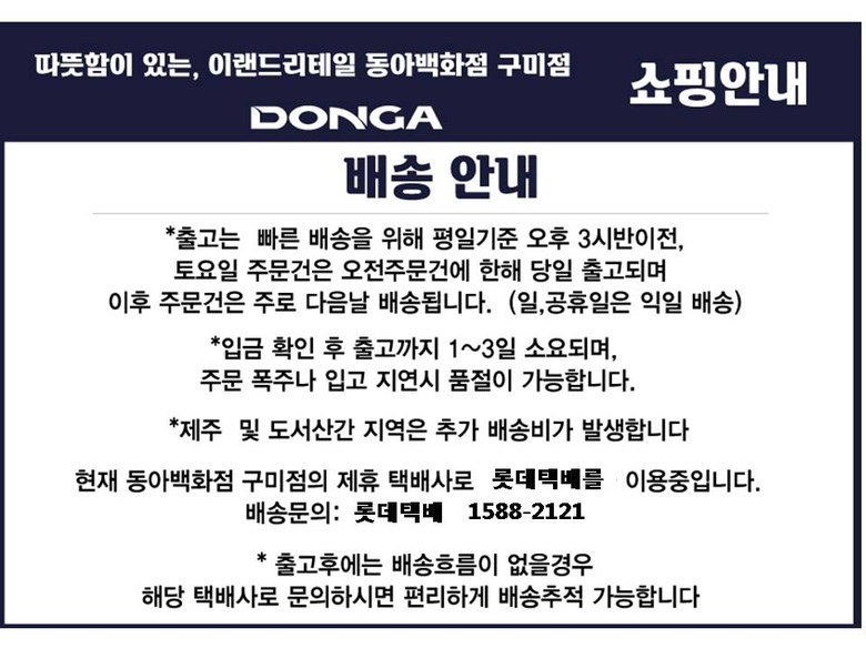 | 배송기간 | ㆍ도서산간 지역 등은 배송에 3-5일이 더 소요될 수 있습니다. - 천재지변, 물량 수급 변동 등 예외적인 사유 발생 시, 다소 지연될 수 있는 점 양해 부탁드립니다. | ||