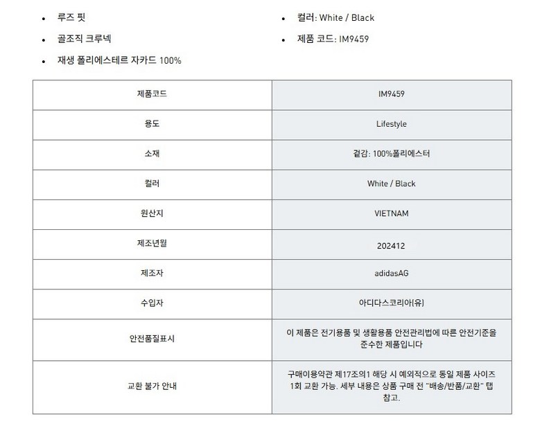 - ㆍ교환/반품에 관한 일반적인 사항은 판매자가 제시사항보다 관계법령이 우선합니다.