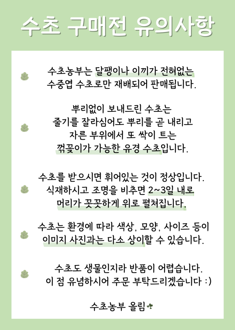 | 제조국(원산지) | 국산 | 제조자(수입자) | 수초농부 |