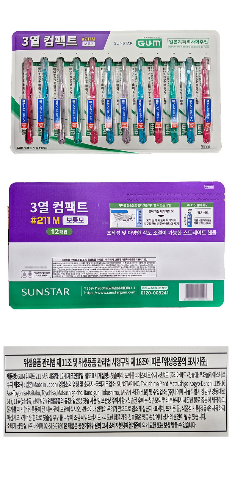 | 품명 및 모델명 | 검 컴팩트 211M 칫솔 12개입 / #211M | 인증/허가 사항 | 해당사항 없음 |