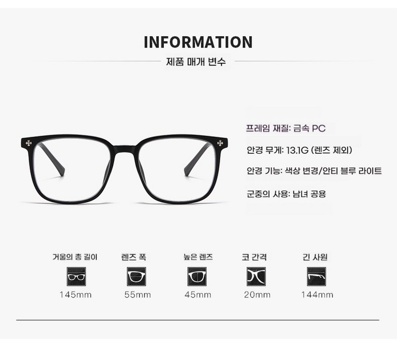 - 렌즈 종류: 변색렌즈(자외선과 온도에 따라 변함)