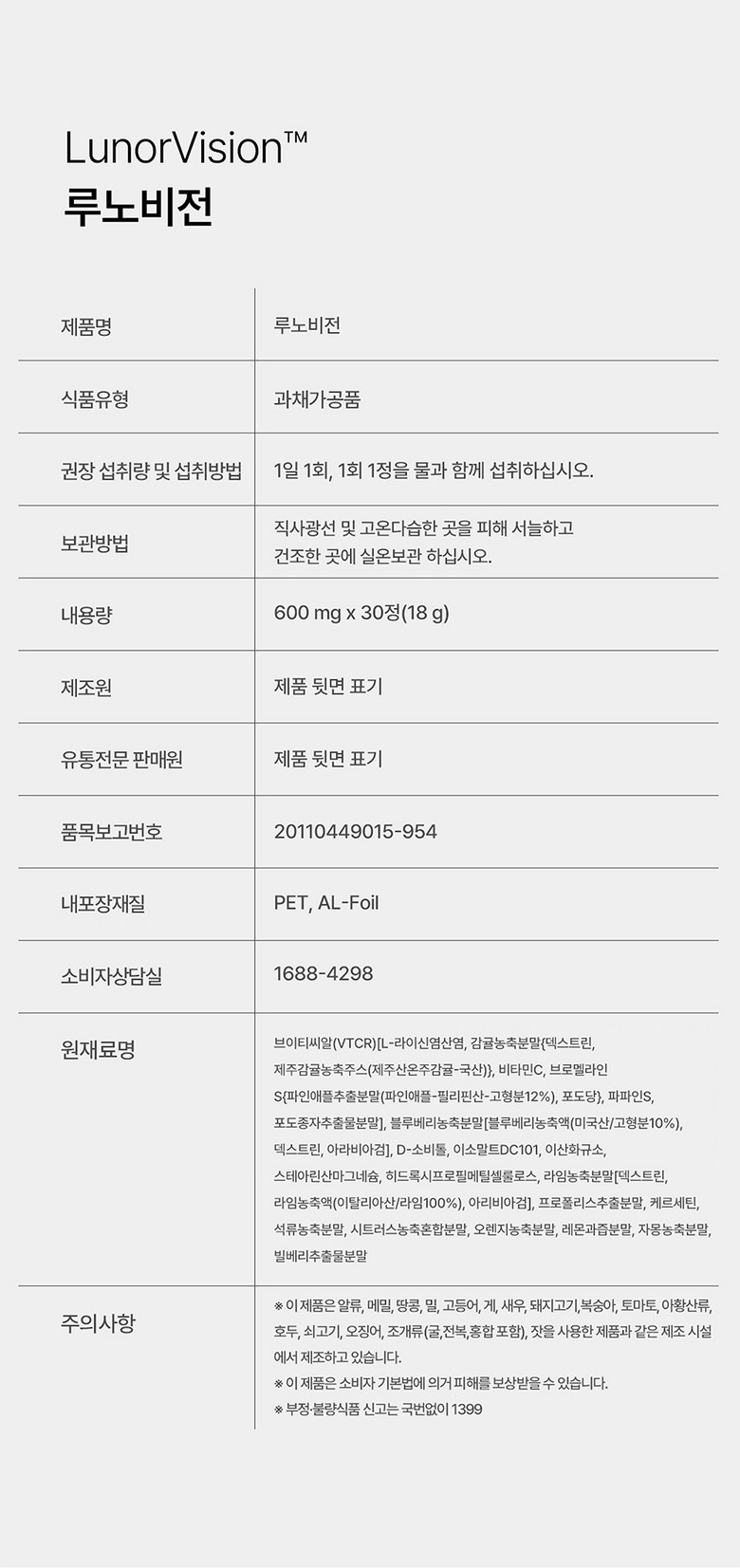 | 원재료명 및 함량 | 상품 상세페이지 참조 | 영양성분 | 상품 상세페이지 참조 |