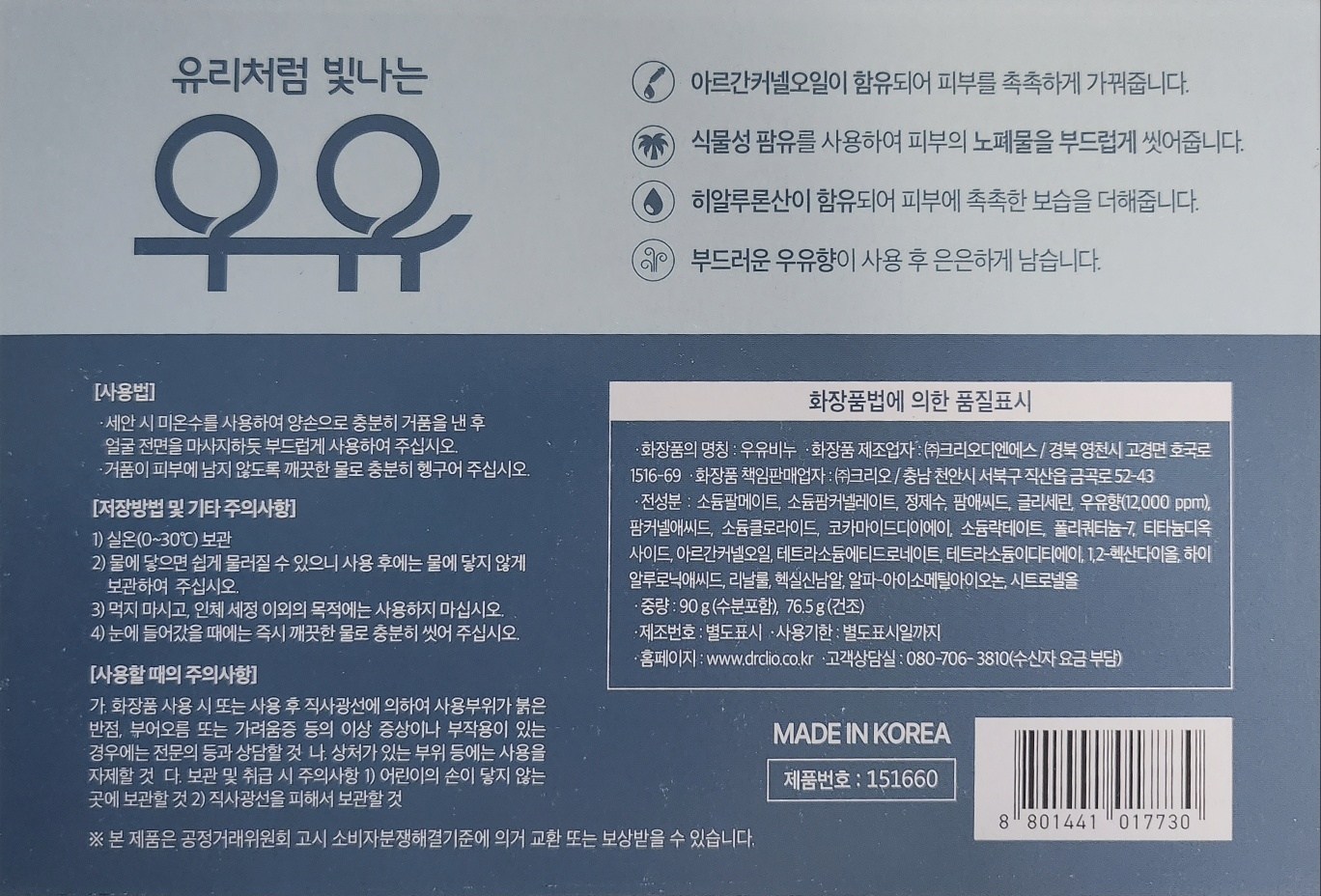 | 화장품제조업자, 화장품책임판매업자 및 맞춤형화장품판매업자 | 컨텐츠 참조 | 제조국 | 한국 |